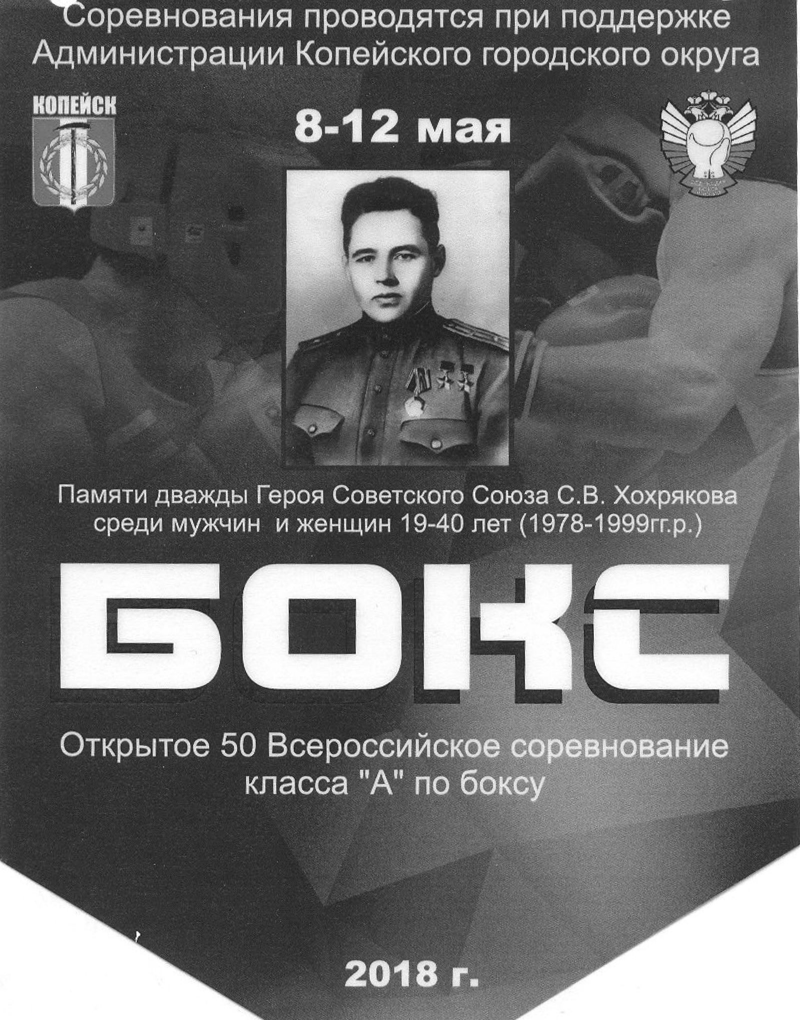 В Копейске (Челябинская обл.) завершилось 50-е Всероссийское соревнование класса "А" по боксу памяти дважды Героя Советского Союза С.В. Хохрякова.