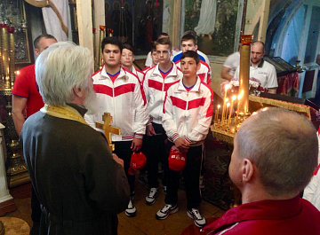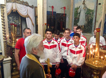 Перед выездом команда посетила храм и получила благословение от настоятеля на участие в соревнованиях.