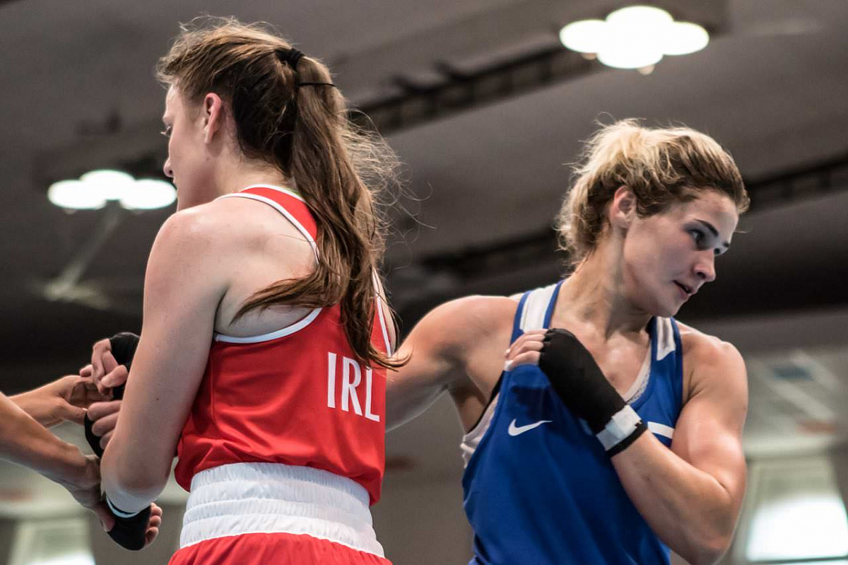 Дарья Абрамова (57 кг) разобралась с ирландкой Микаэлой Уолш.