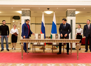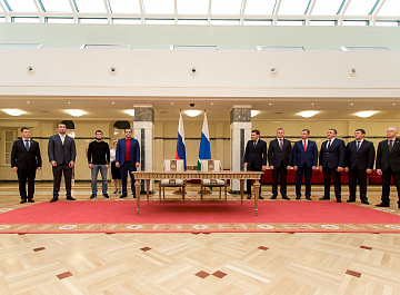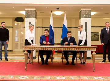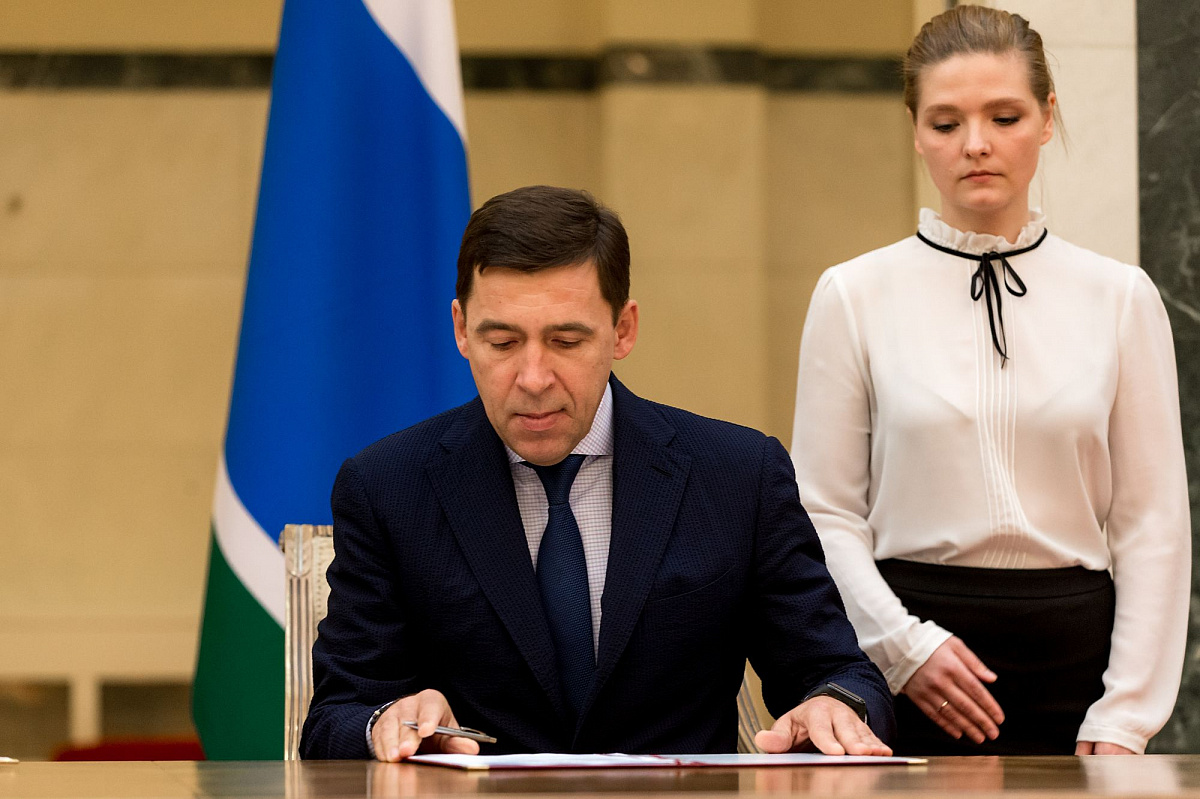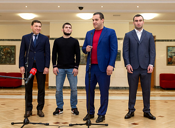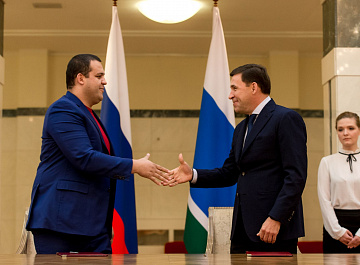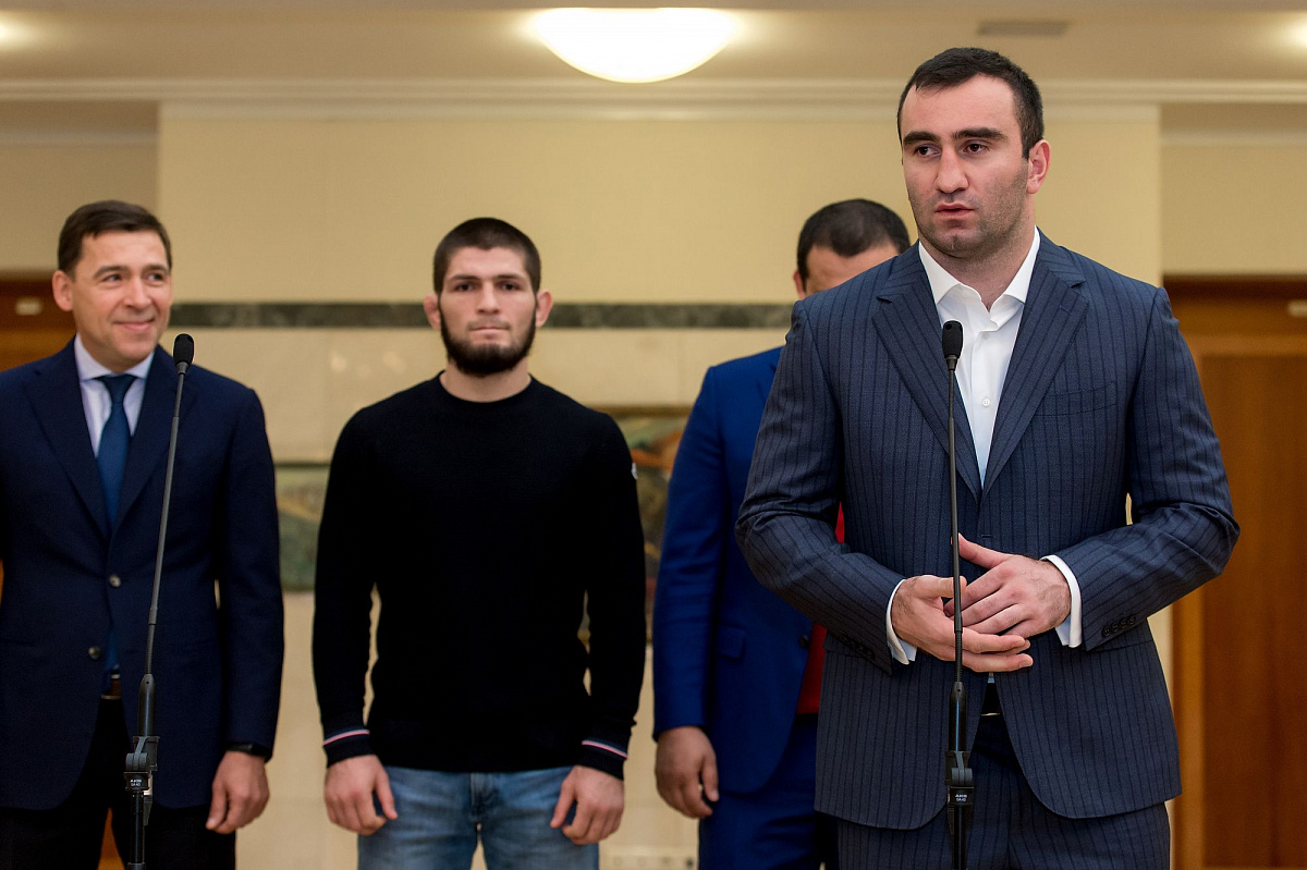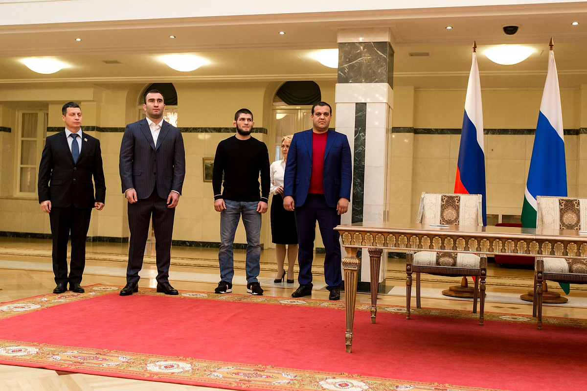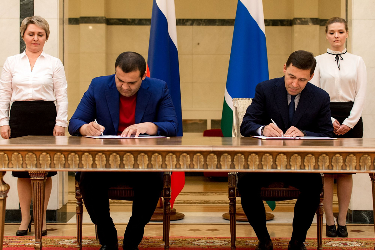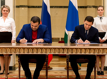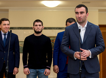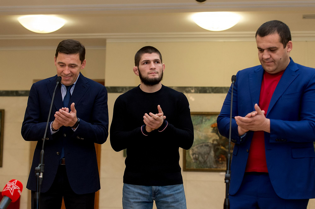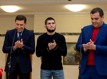 Церемония подписания состоялась в резиденции губернатора в Екатеринбурге, на ней присутствовали российский боксер-профессионал Мурат Гассиев и чемпион по смешанным единоборствам Хабиб Нурмагомедов.