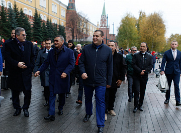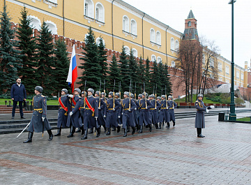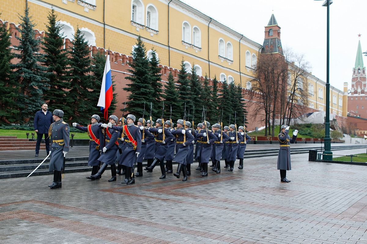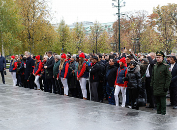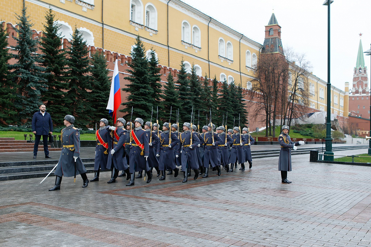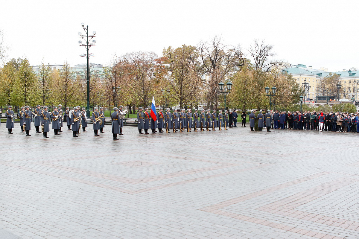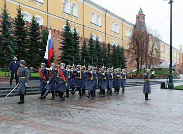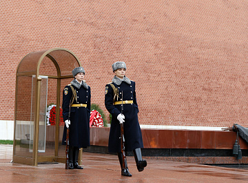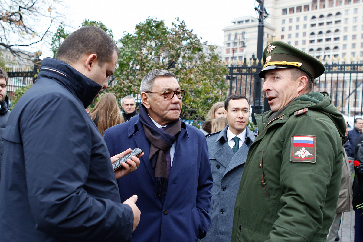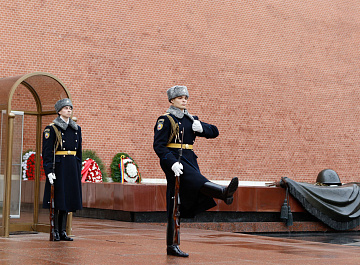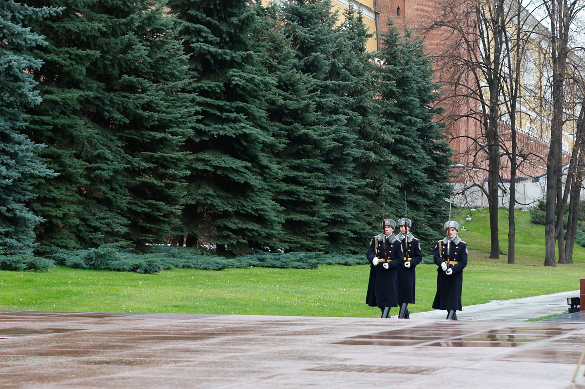 Временный президент Международной ассоциации бокса (AIBA) Гафур Рахимов и генеральный секретарь Федерации бокса России Умар Кремлёв в сопровождении участников конгресса AIBA возложили цветы к Могиле Неизвестного солдата в память о погибших в Великой Отечественной войне.