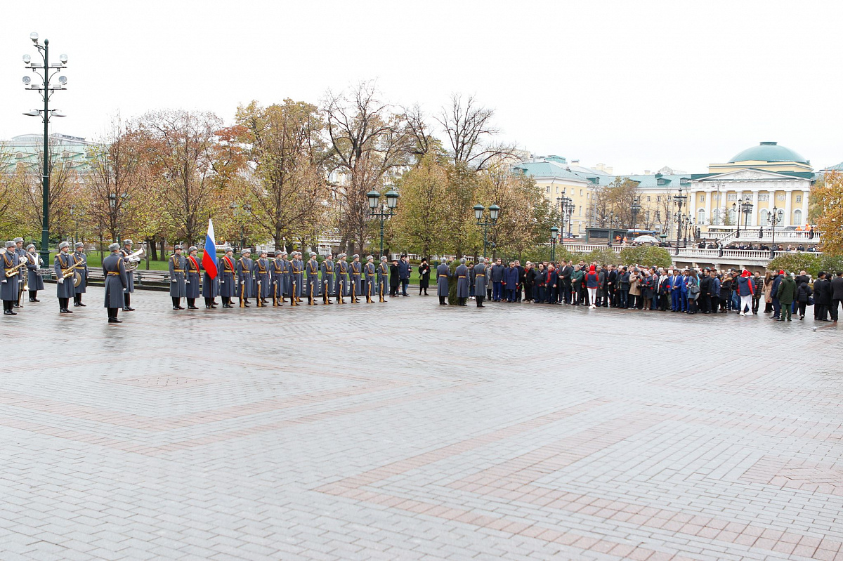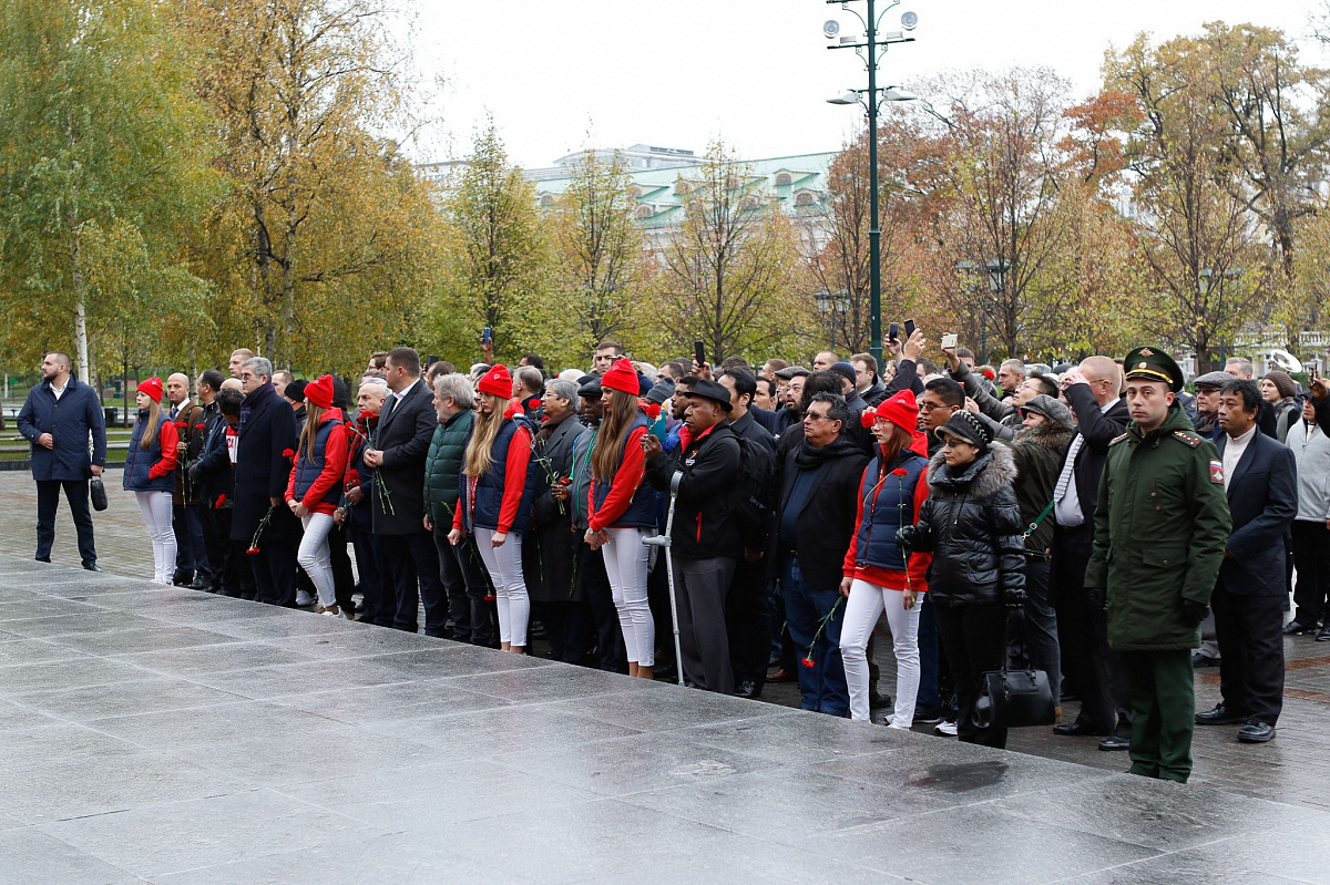 В торжественной церемонии приняли участие представители 138 стран. Также цветы к Вечному огню возложили олимпийские чемпионы Борис Лагутин, Олег Саитов, Алексей Тищенко, Рахим Чахкиев, Гайдарбек Гайдарбеков.