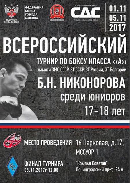 С 1 ПО 5 НОЯБРЯ В МОСКВЕ СОСТОЯТСЯ ВСЕРОССИЙСКИЕ СОРЕВНОВАНИЯ ПО БОКСУ КЛАССА "А" СРЕДИ ЮНИОРОВ ПАМЯТИ Б.Н. НИКОНОРОВА